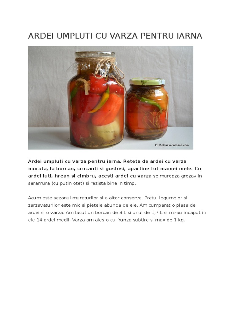 Reteta Ardei Umpluti Cu Varza La Borcan