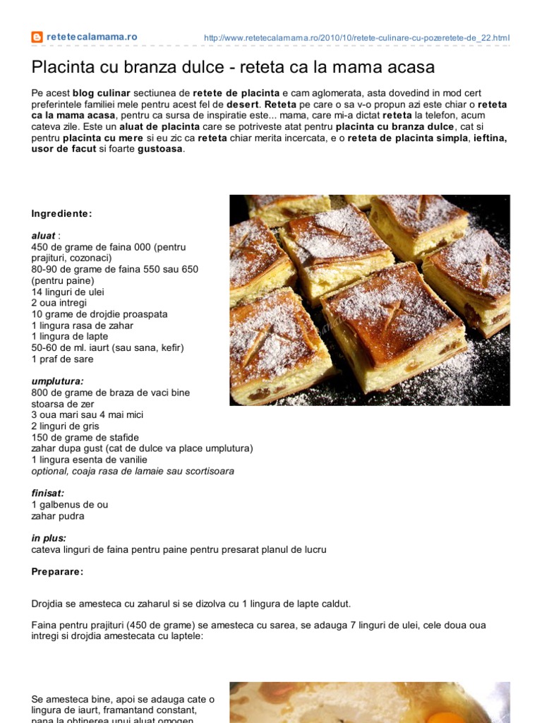 Retetecalamama Ro Placinta Cu Branza Dulce Reteta Ca La Mama Acasa